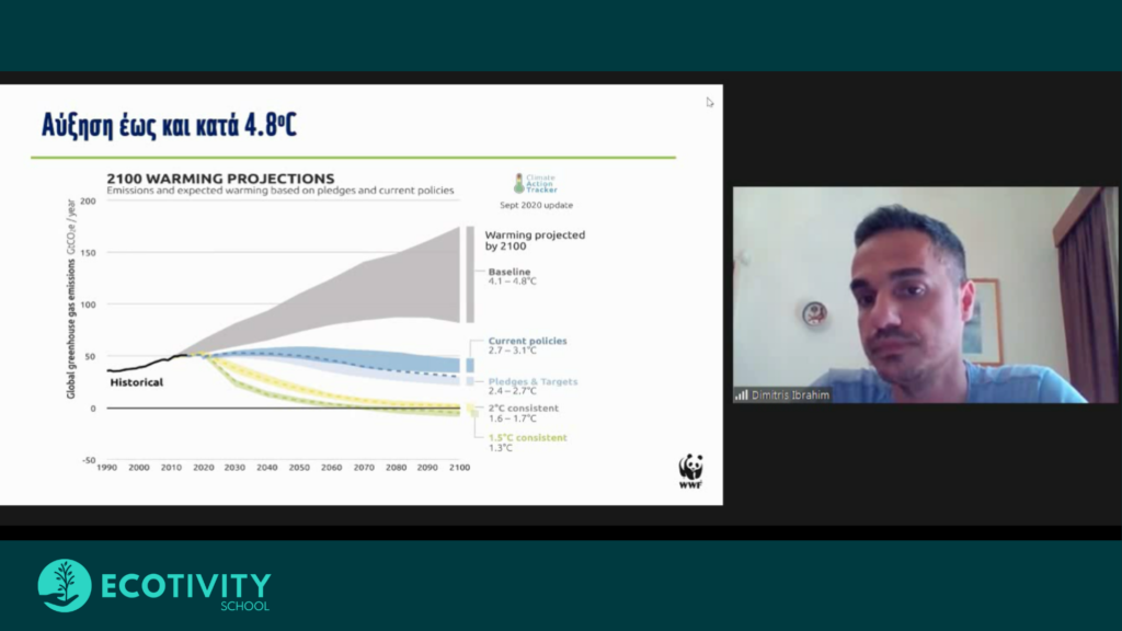 Η ημέρα ξεκίνησε με την ομιλία του Τέλη Τύμπα, για ένα βιώσιμο ενεργειακό μέλλον που αξιοποιεί τα διδάγματα του παρελθόντος. Στη συνέχεια, ο Δημήτρης Ιμπραήμ από τη WWF Ελλάδος μας εισήγαγε στον όρο κλιματική ουδετερότητα. Ο Γιώργος Βελεγράκης, θέτοντας το δίλημμα εξορύξεις υδρογονανθράκων ή βιωσιμότητα, προβλημάτισε ευχάριστα τους “Ecotivians”.